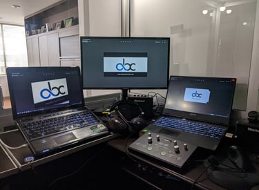 UPS specifically for the sound mixers, interpreter's console, monitor, and laptops.